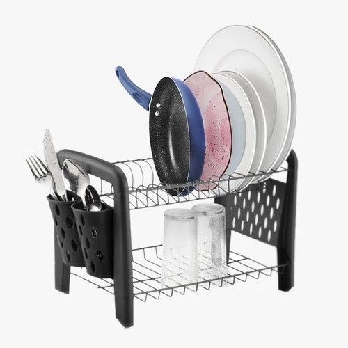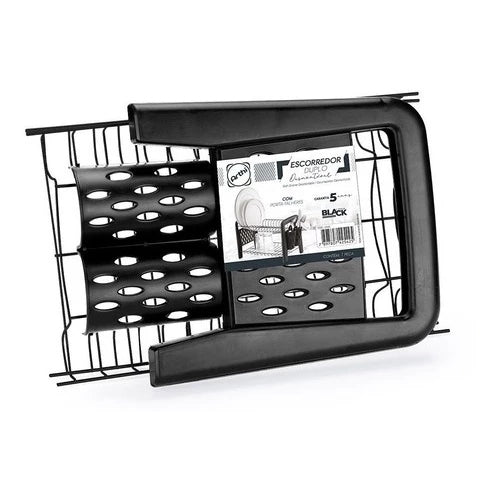 O Escorredor Duplo Desmontável com Porta Talheres é ideal para quem busca manter a pia sempre limpa e organizada, sem abrir mão do visual moderno.