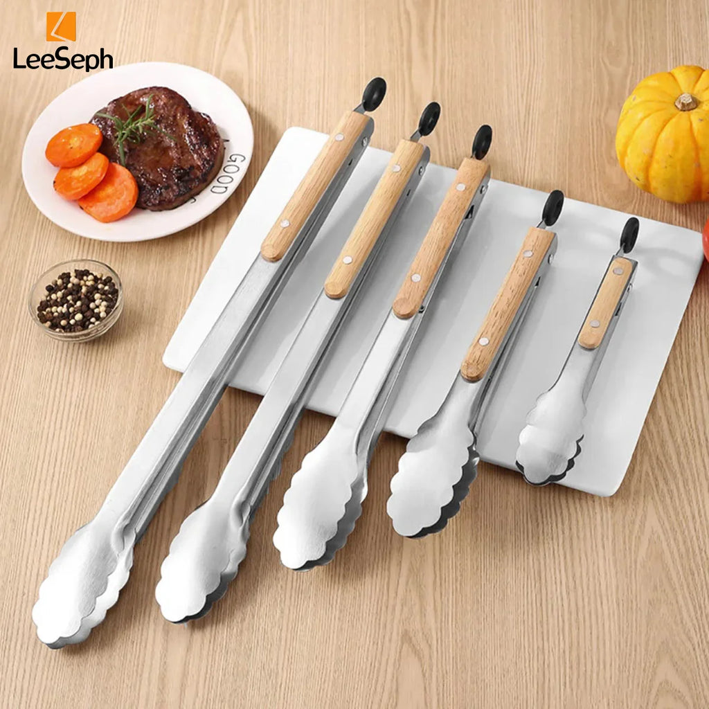 Eficiência ergonômica: Fabricadas com cabo de carvalho para uma aderência natural antiderrapante, essas pinças para grelhar oferecem excelente isolamento térmico, garantindo segurança e conforto com um design antiderrapante e resistente ao calor.